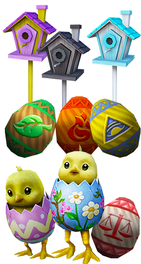 Eggbert has returned to the Shopping District with his usual festive goodies. In addition to the numerous spring-themed fish populating the waters once more, returning spring items will be making their way to the Crown Shop over the next few days! Keep checking back here to see which spring items are currently available.